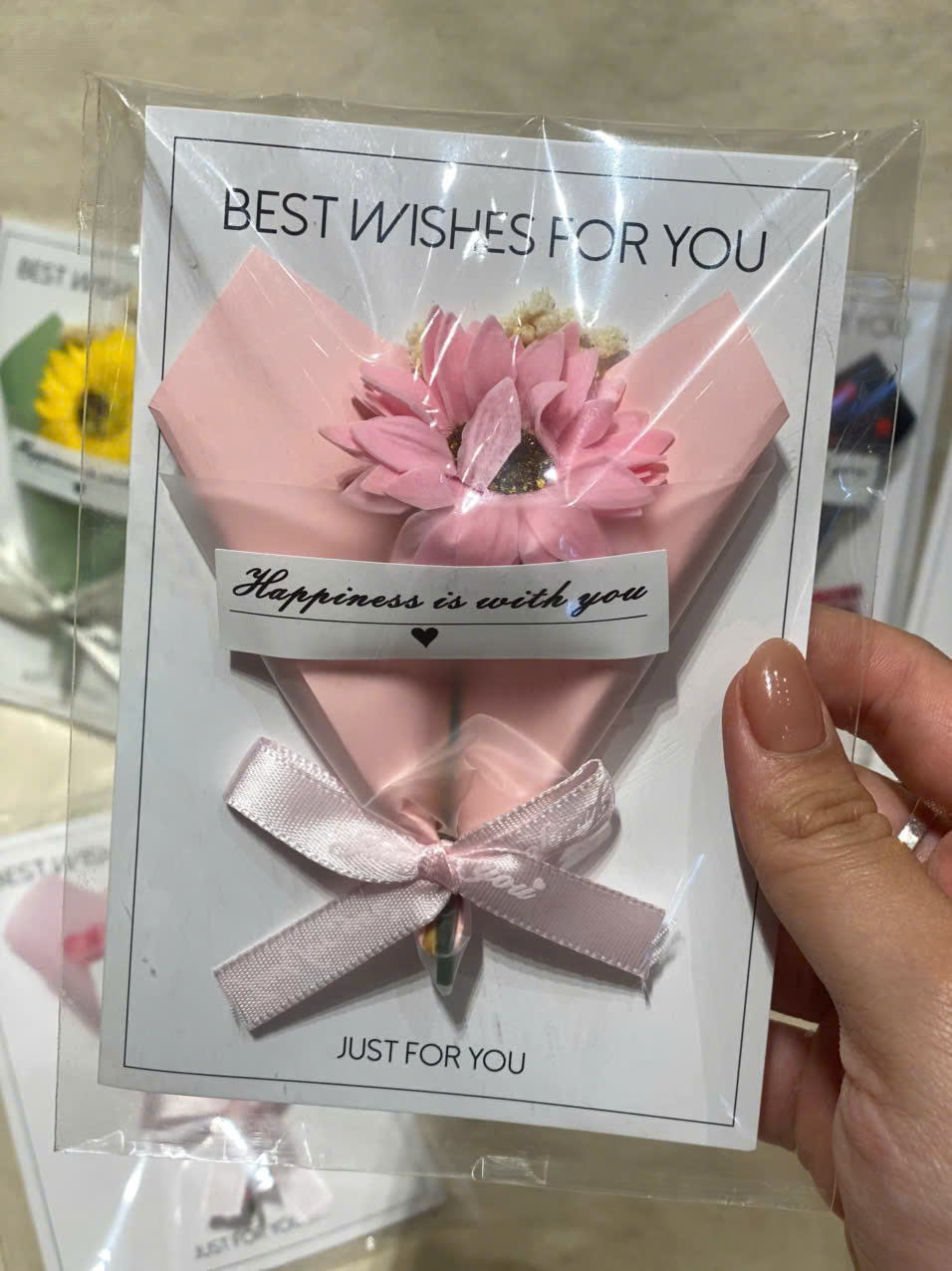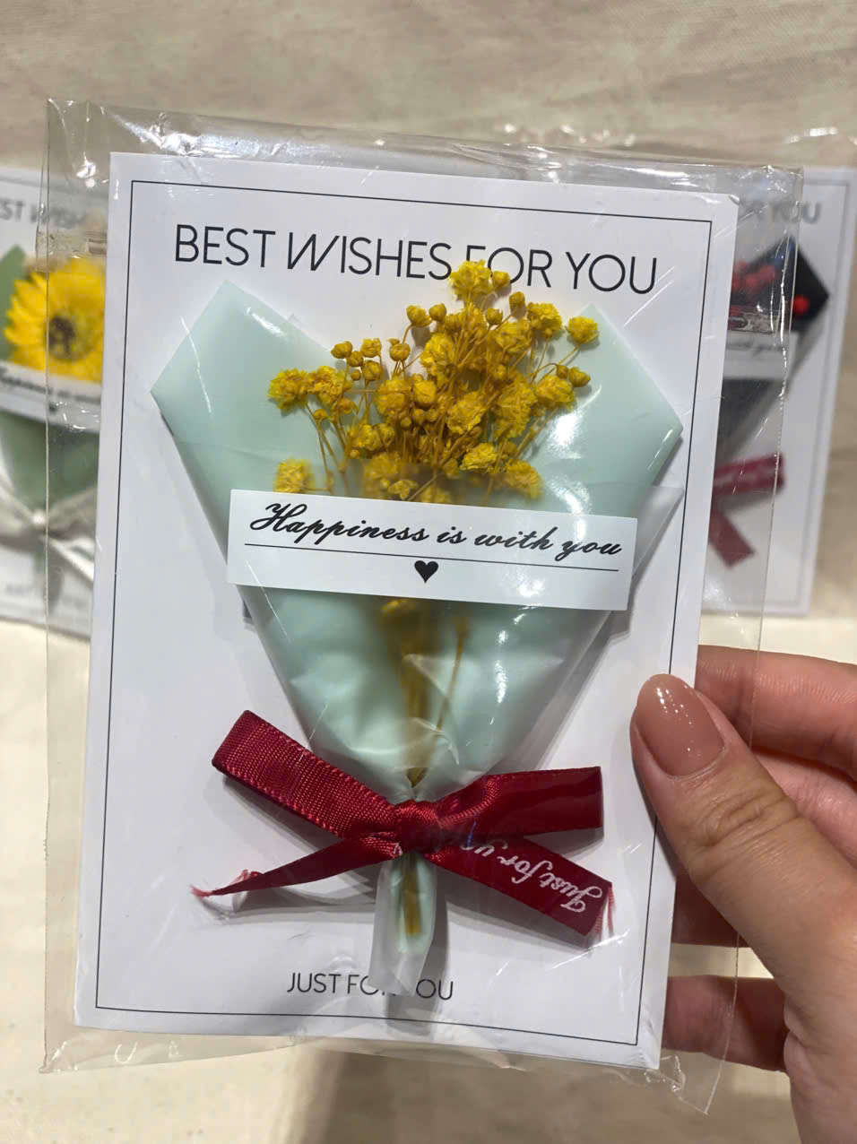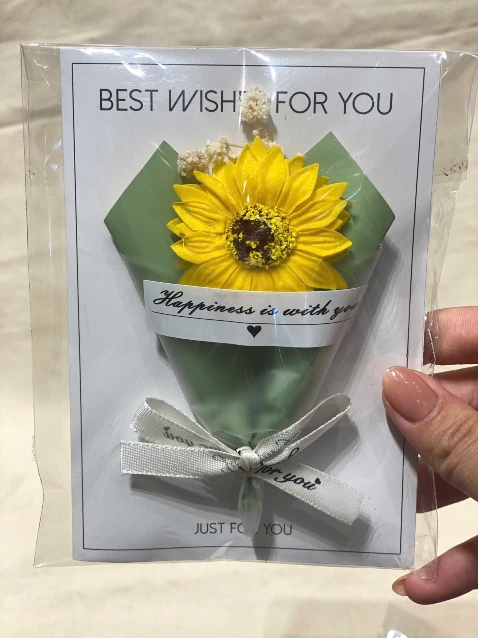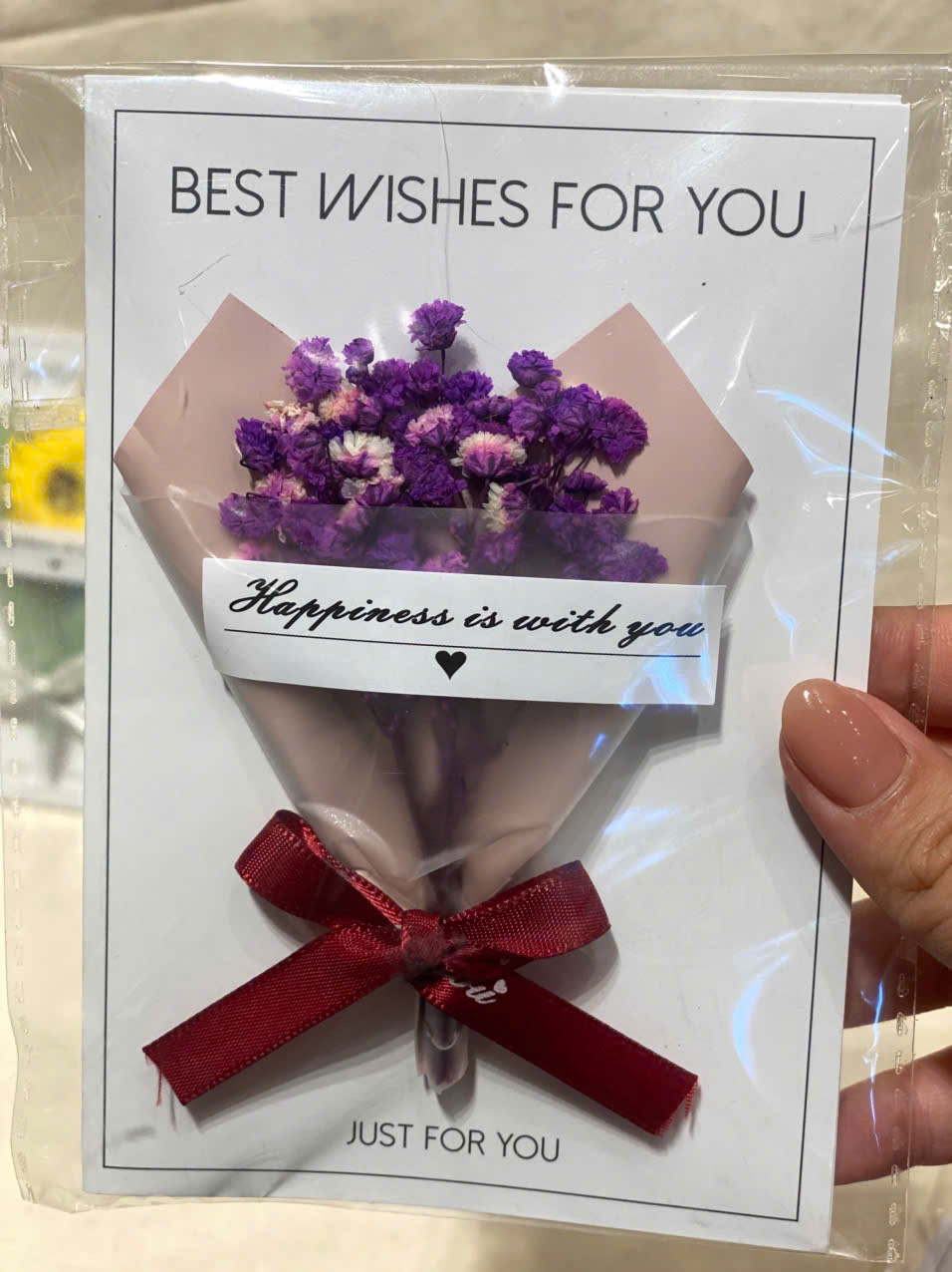 Thiết kế 2in1: Vừa là một bó hoa tí hon xinh xắn, vừa là tấm thiệp để bạn nhắn gửi vài dòng tâm tình "Best Wishes For You".